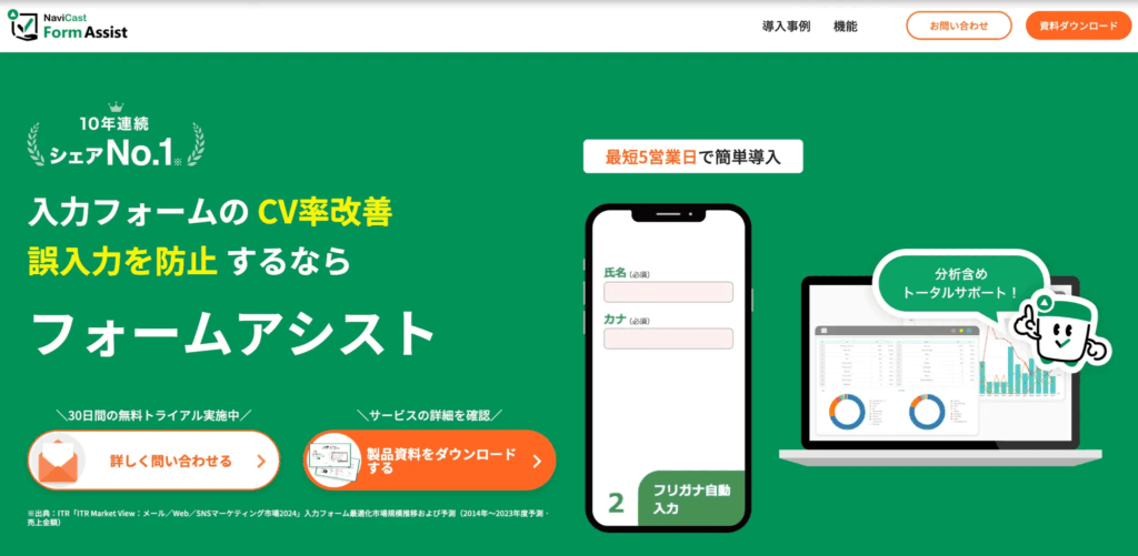 ツールの特長入力補助が充実/エラー・離脱箇所の可視化/導入〜アフターサポートまでが充実