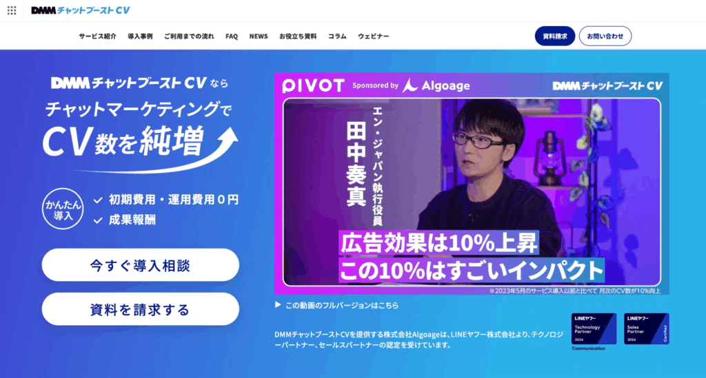 DMMチャットブーストCVは、チャットを通じてカゴ落ちユーザーにアプローチし、購入再開を促すサービスです。ユーザーが抱えやすい疑問や不安を、その場で解消できるコミュニケーションを提供し、離脱後の“あと一押し”を自然に後押しします。