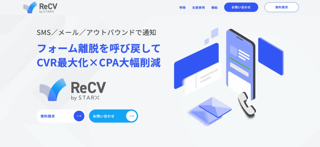 こうした課題に対応できるサービスが ReCV です。ReCVでは、SMSやメールによる追客施策に加えて、AI受電やアウトバウンドコールを活用し、Web上では拾いきれなかった顧客の声を収集できます。