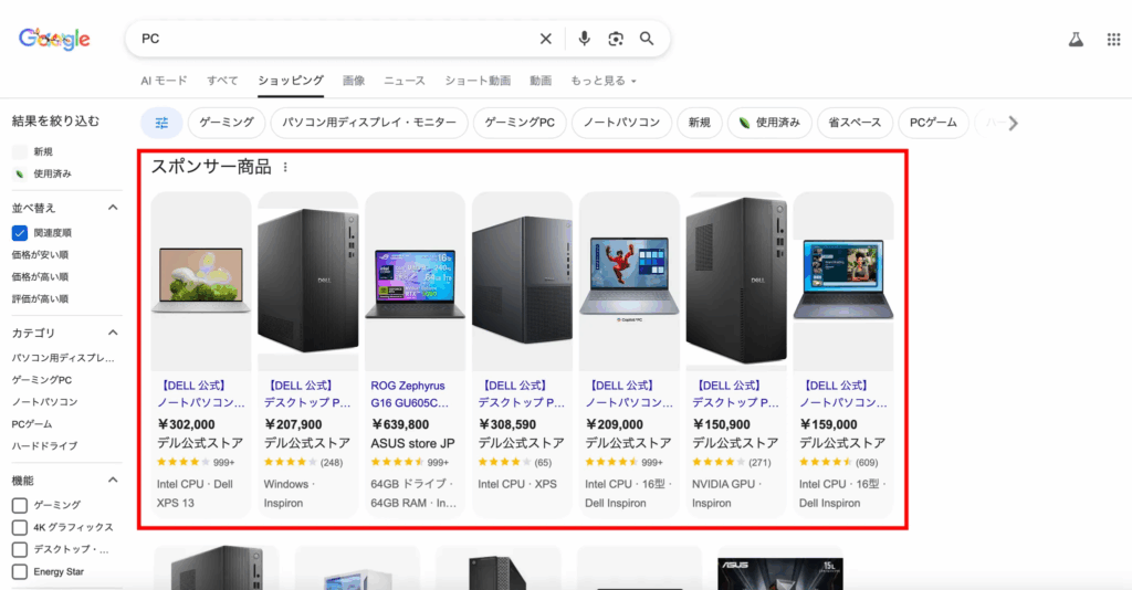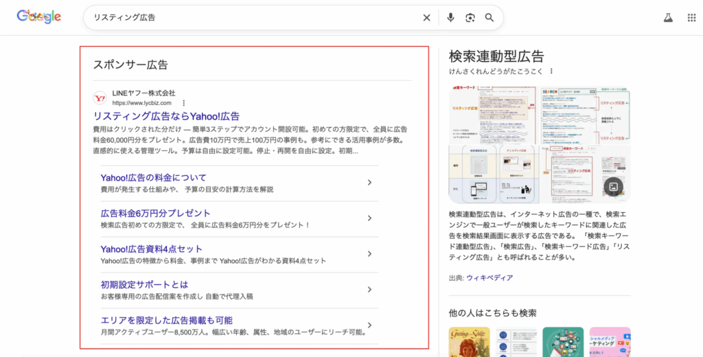 | メリット | ・商品画像や価格をあらかじめ訴求できる ・購入意欲の高いユーザーにアプローチしやすい ・検索結果上で視認性が高い |