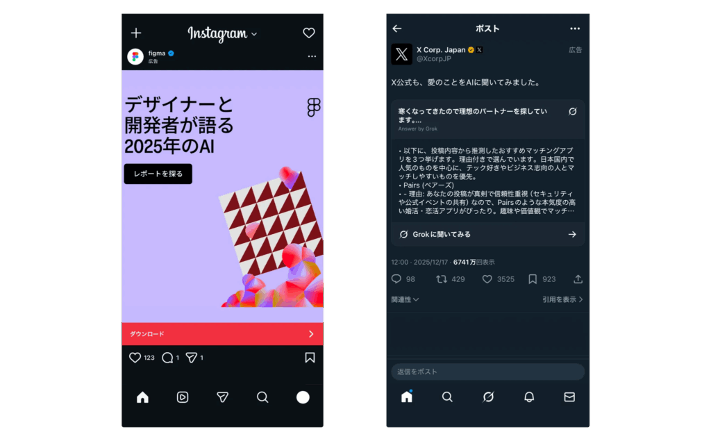 | メリット | ・年齢や興味関心などでターゲットを細かく設定できる ・画像や動画で視覚的に訴求できる ・商品やブランドの認知拡大に向いている |