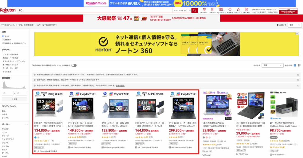 | 表示される場所 | ECモール内の検索結果や特集枠 |