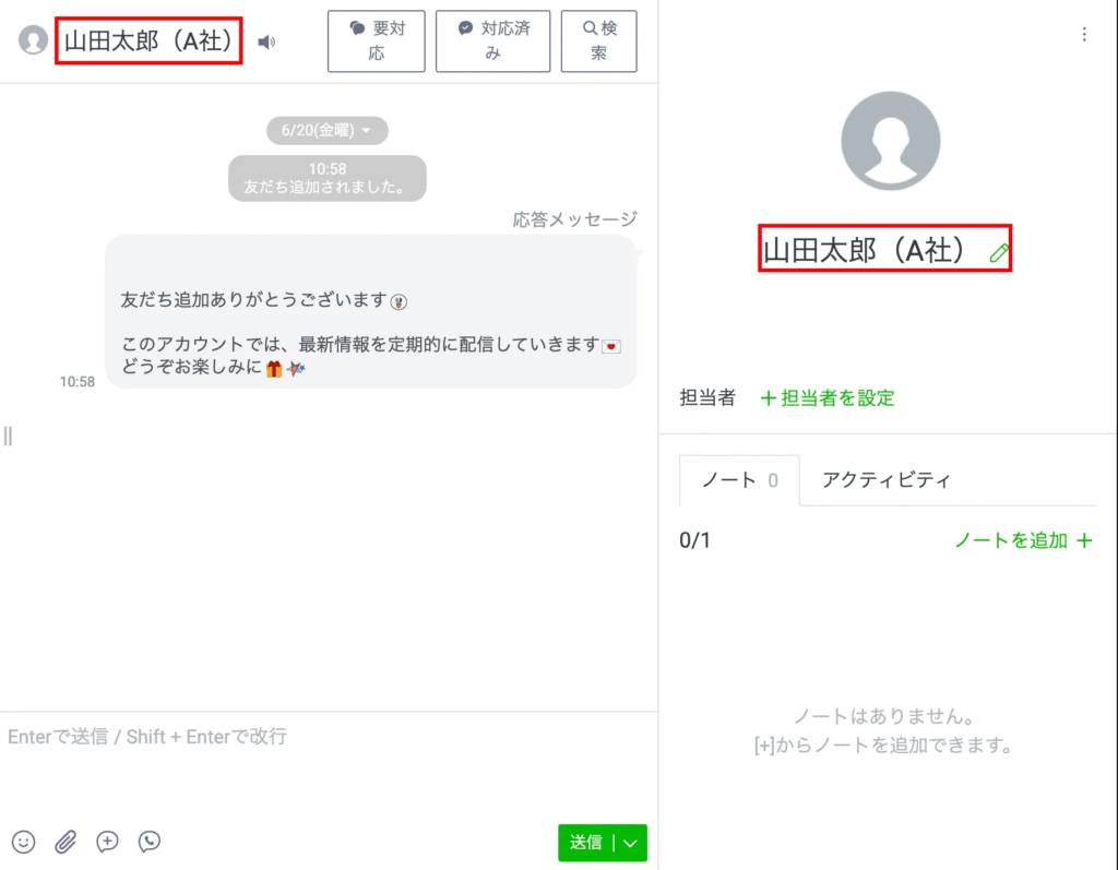 加えて、管理画面から独自に変更することも可能で、同姓同名が多い場合や社内で管理しやすいようにカスタマイズできます。例えば「山田太郎(A社)」といった形にしておけば、営業担当ごとにスムーズに対応できるでしょう。