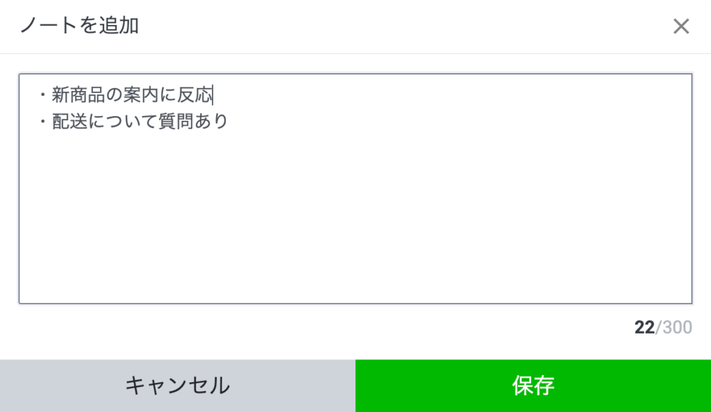 いわゆるメモ機能に近い役割を担い、スタッフ間での情報共有にも有効です。例えば「前回は新商品の案内に反応した」「配送について質問があった」といった履歴を残しておけば、顧客ごとにパーソナライズした対応が可能になります。