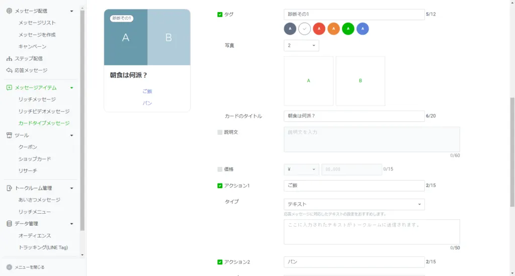 参考記事:LINE公式アカウントのカードタイプメッセージとは?作成方法から効果的な活用方法まで解説