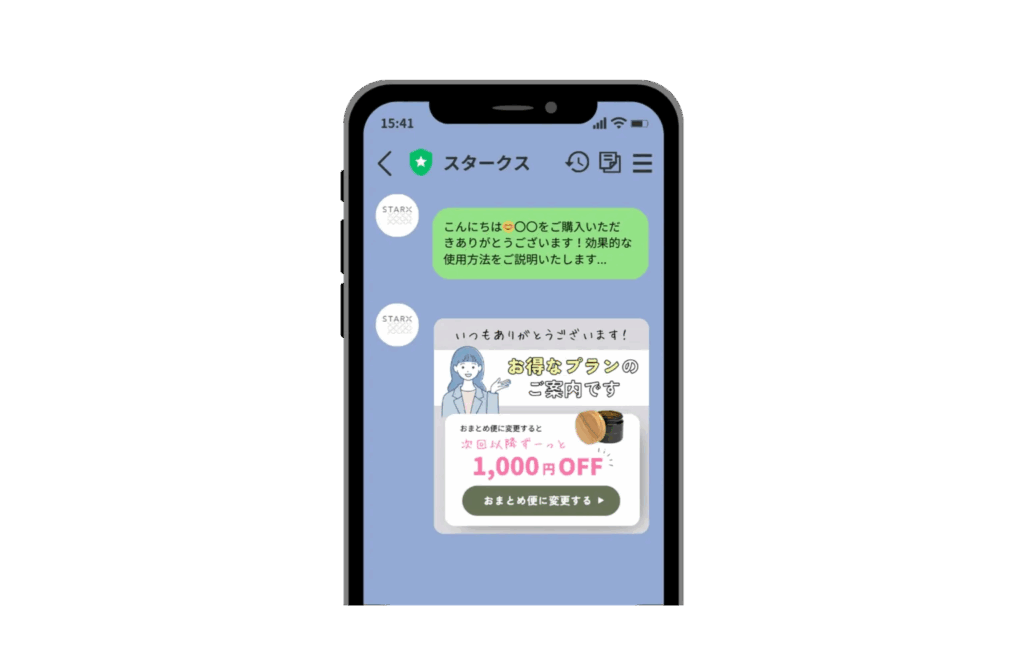 また、ID連携はステップ配信との相性も抜群です。新規登録から購入、継続利用までのプロセスに合わせてシナリオを設計することで、ユーザーの行動を自然に後押しできます。例えば、登録直後には商品紹介やキャンペーン情報を、購入後には活用方法や次回購入のメリットをそれぞれのユーザーに合わせて順次配信することで、解約防止やLTV向上につなげられます。
