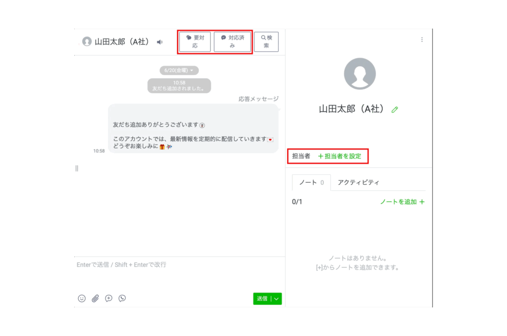 特に複数人でアカウントを運用している場合、この管理機能があることで全体の業務効率が向上し、スムーズな顧客対応を実現できます。履歴が残るため、対応の進捗を後から確認できるのも大きな利点です。