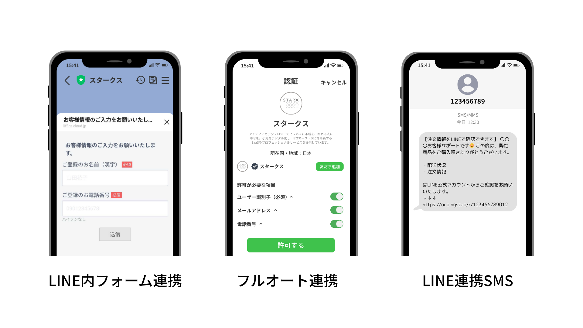 LINE友だちを特定するために必須なID連携を「LINE連携SMS」「LINE内フォーム連携」「フルオート連携」など様々な方法で促進します。