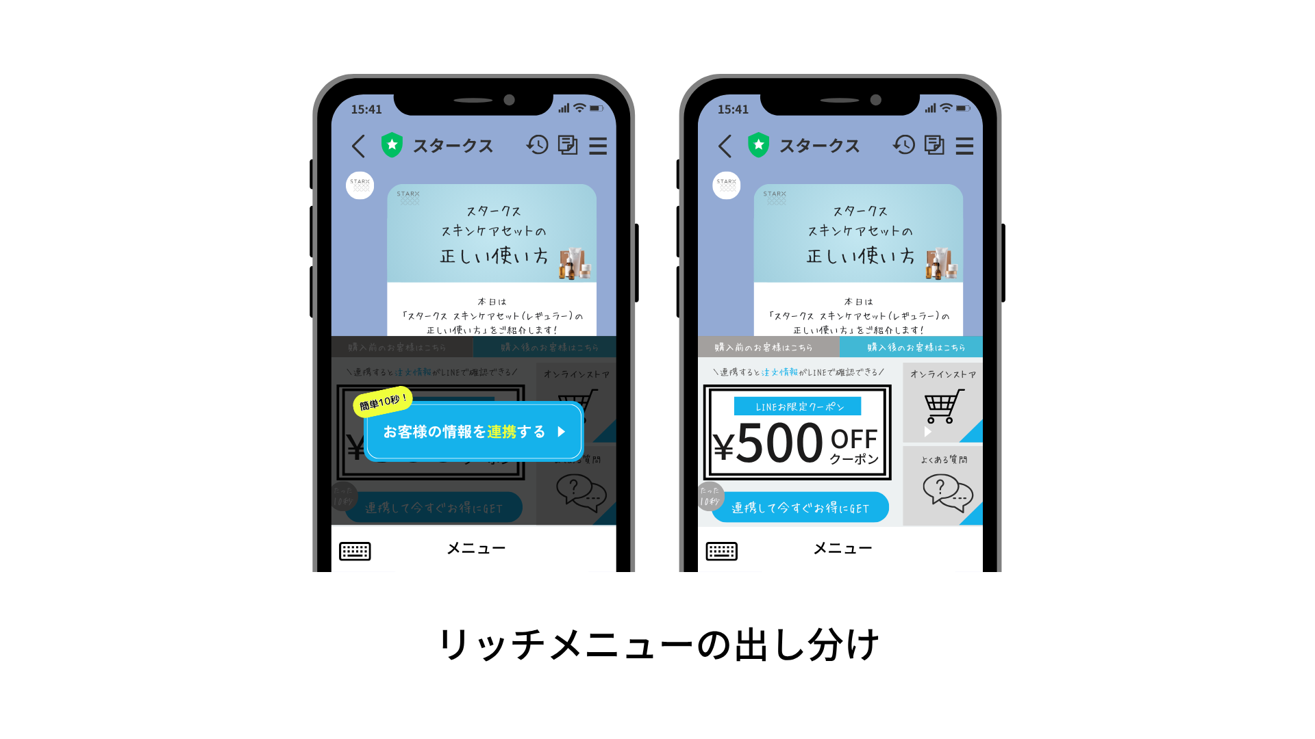 流入経路に応じてリッチメニューや配信を出し分けたり、Botを活用したアンケートや診断の回答結果を基にしたセグメント配信を行うことができます。