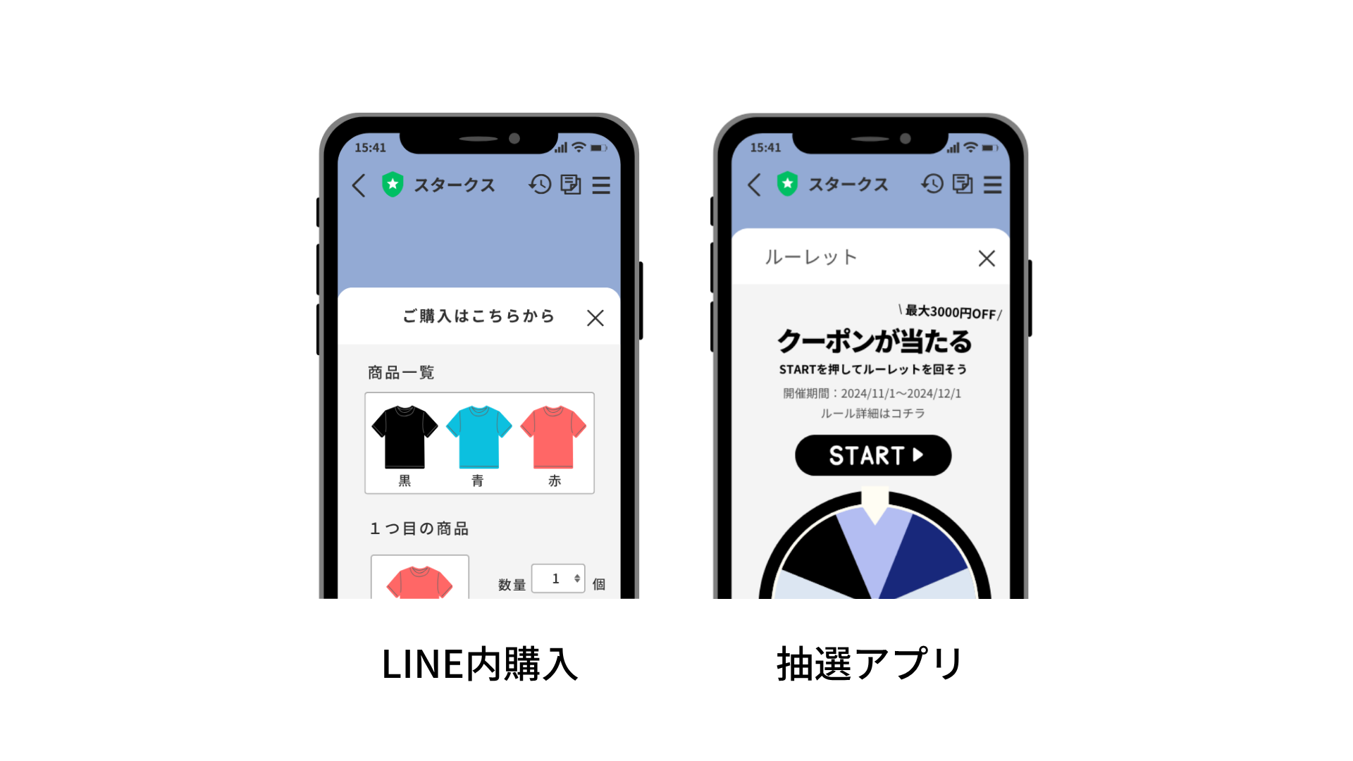 ダウンロード不要のアプリをLINE内で実装します。抽選用アプリや診断アプリ、購入用フォームなど顧客体験の向上を向上させる様々な開発ができます。